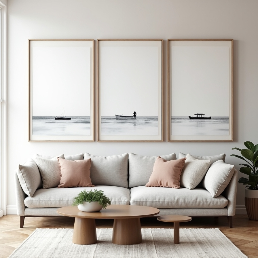 A triptych arrangement is a simple yet impactful way to create a gallery-style display. By dividing a single image into three panels or selecting three related pieces, you can achieve a cohesive look with minimal effort. This approach works well in modern interiors, offering a clean and structured design. Large-scale prints can make a strong visual statement while maintaining balance and symmetry in the room.