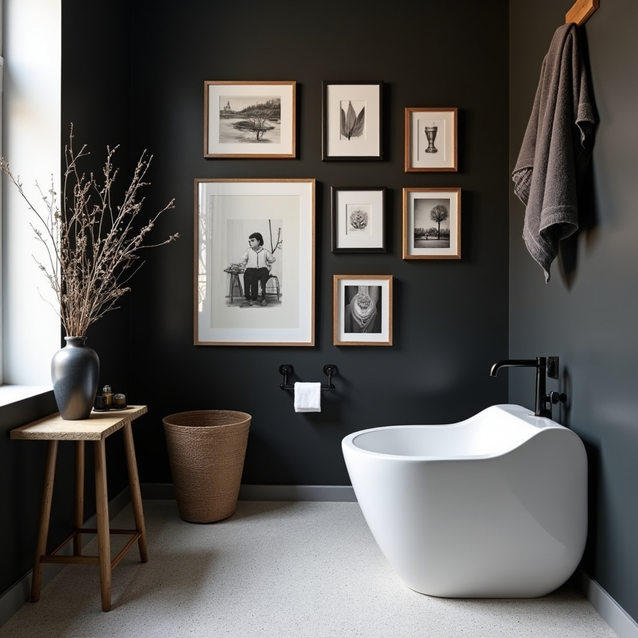 Bathroom Gallery Wall with Modern Contrast