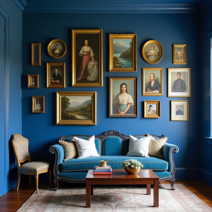 Rich Royal Blue Gallery Wall for Timeless Appeal