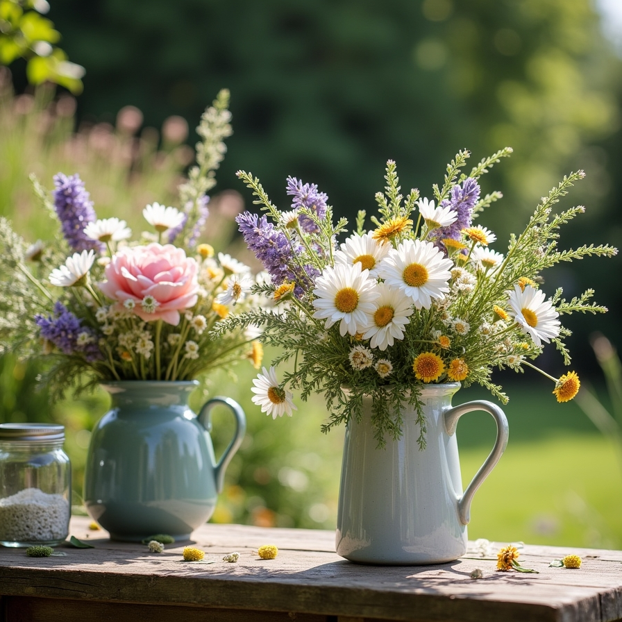 Seasonal floral arrangements help establish the mood of a garden celebration right away. Loose bouquets made with daisies, lavender, ranunculus, and soft greenery create a relaxed and natural feel. Displaying them in vintage pitchers or clear jars adds charm without looking overly styled or formal.
