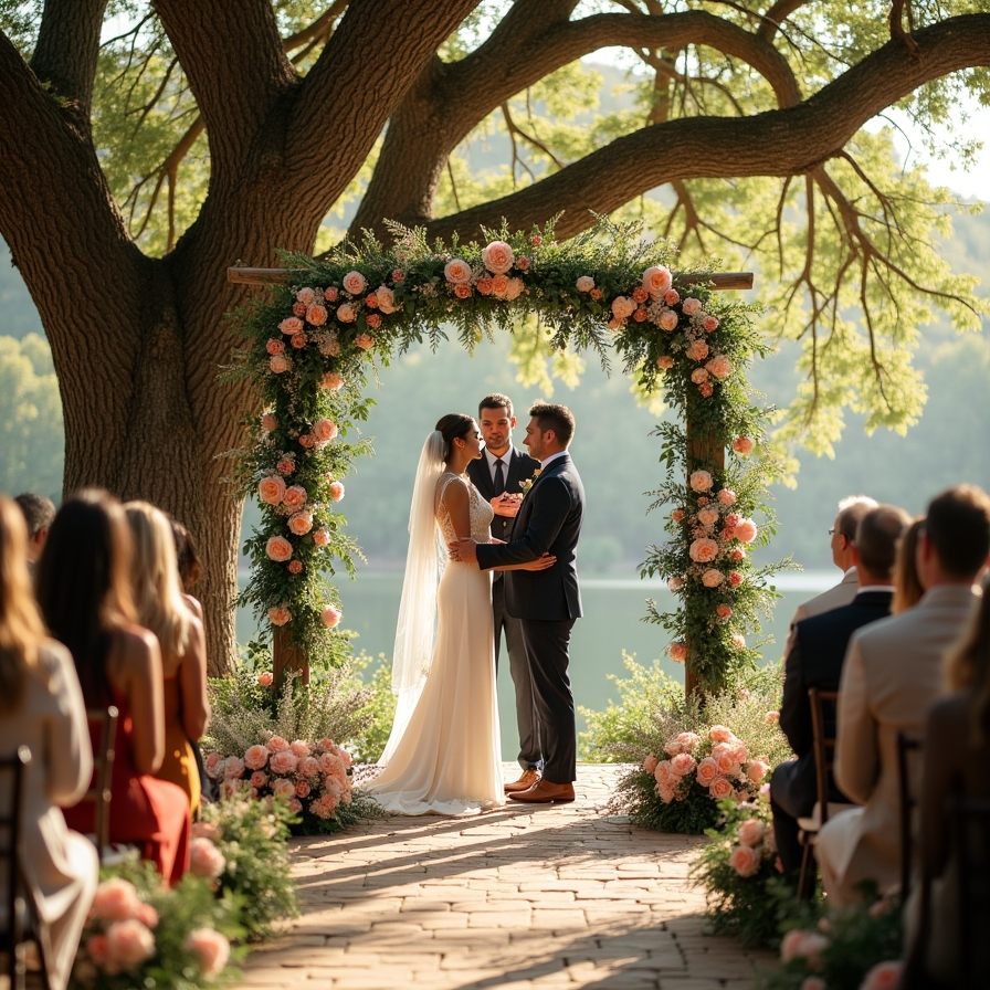 Positioning the structure under a large tree can make the ceremony feel more intimate and timeless. Even a simple wooden frame decorated with vines and seasonal blooms can look stunning. Guests are immediately drawn into the space, creating a warm and inviting atmosphere that feels both natural and thoughtfully styled.