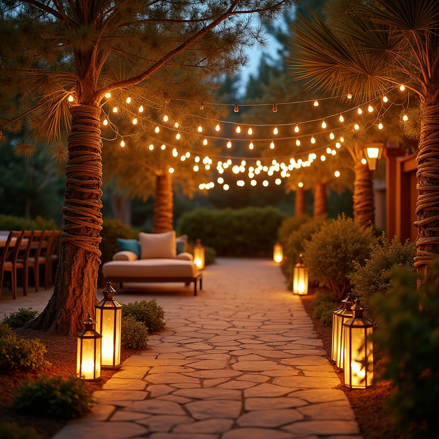 5. Warm Evening Lighting with String Lights and Lanterns