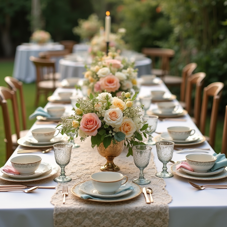A garden reception can feel like a charming afternoon gathering with the addition of vintage table settings. Mismatched china plates, delicate teacups, and lace table runners create a warm and nostalgic atmosphere.