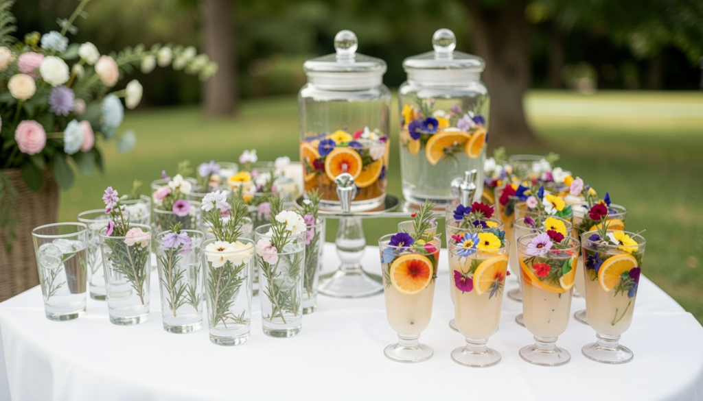 Serving these drinks in glass dispensers or elegant cups makes them easy to access. Couples often choose flavors that reflect their preferences, adding a personal element. These small details turn a simple drink station into a memorable feature that guests enjoy throughout the event.