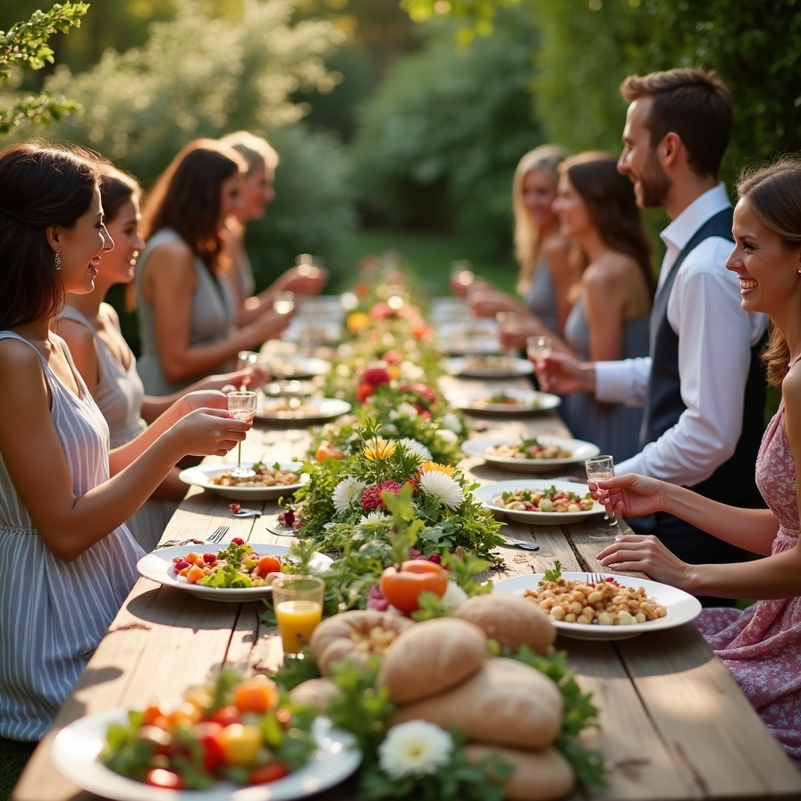 A menu built around seasonal ingredients enhances the garden wedding experience. Fresh salads, roasted vegetables, fruits, and rustic breads create meals that feel light and satisfying. Serving dishes family-style encourages sharing and interaction among guests.