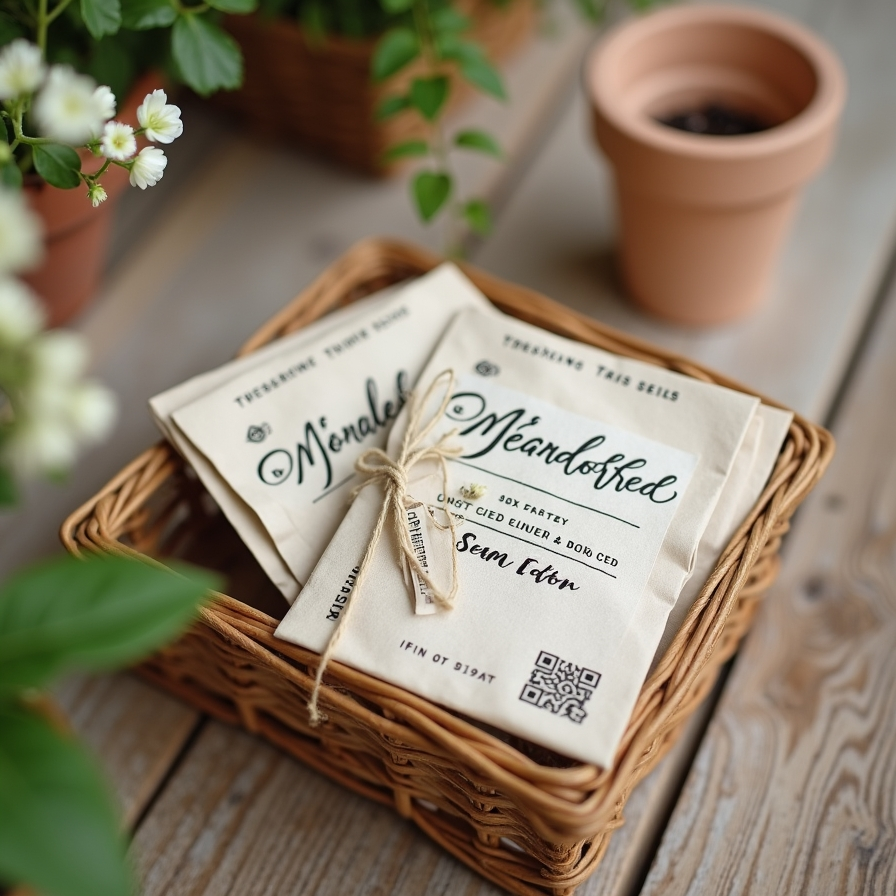 Seed packets make simple yet meaningful gifts that guests can take home and enjoy. Filled with flower or herb seeds, they symbolize growth and new beginnings.