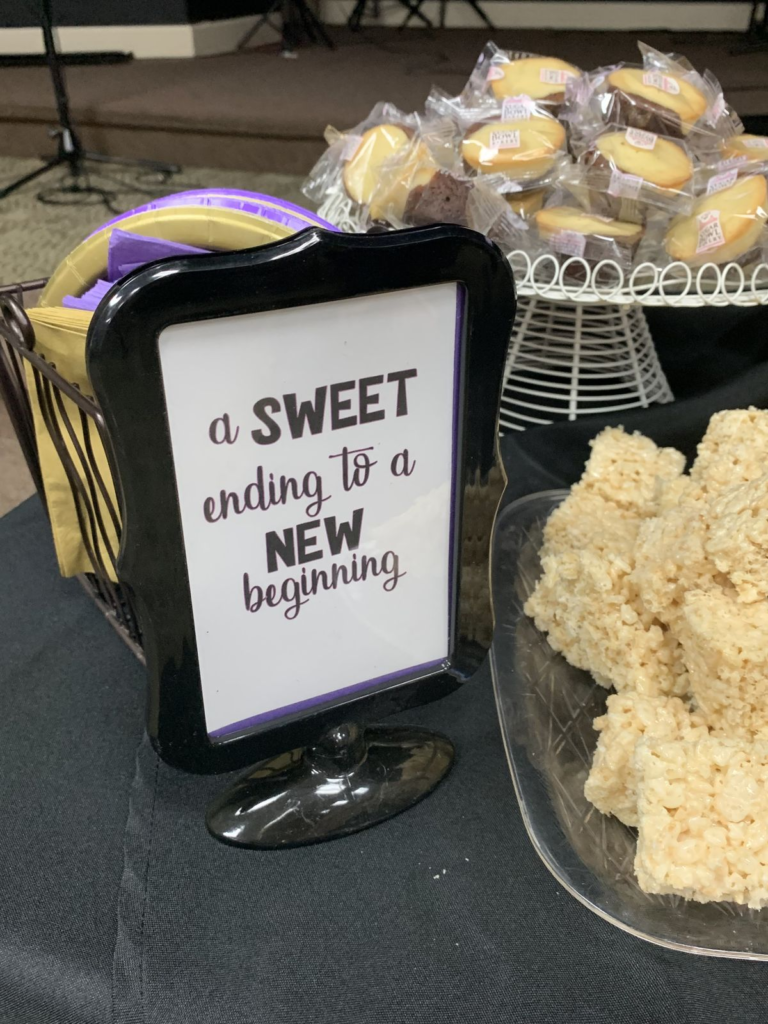 Celebrate the guest of honor with sweet ending decor, featuring banners or signs that deliver a heartwarming message. This simple touch helps set a positive and thoughtful tone.