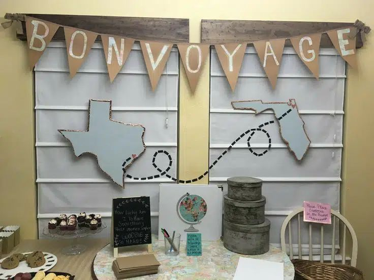 A “Bon Voyage” banner is a classic, elegant choice. It sets a celebratory tone and conveys well-wishes for the journey ahead.