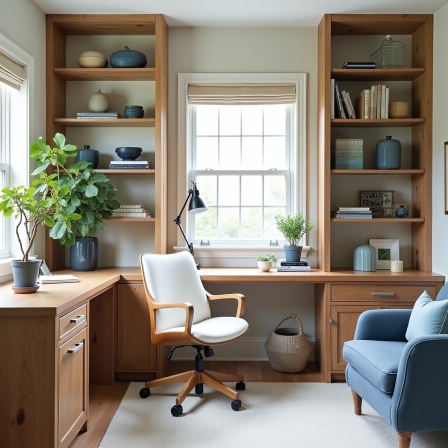 11. Coastal-Inspired Workspace with Natural Wood