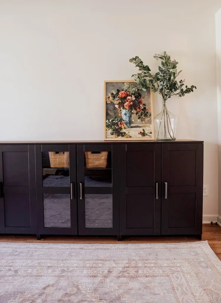 The IKEA BRIMNES collection is known for its clean lines and minimalist appeal, but with a little creativity, it can be transformed into a statement-worthy dining room credenza. This glam-inspired makeover takes the practical design of BRIMNES cabinets and elevates them into a sophisticated storage solution perfect for entertaining spaces.