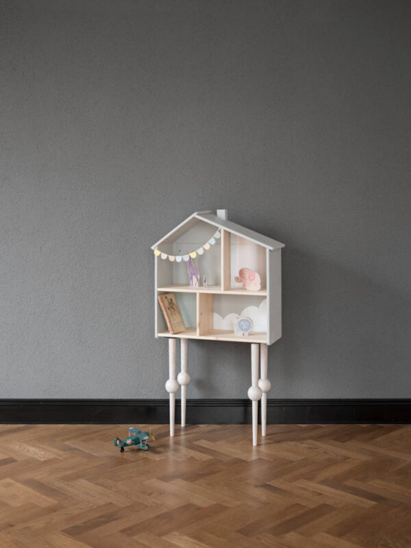The final idea proves that the Flisat doesn’t even have to function as a toy. With the addition of decorative furniture legs from Pretty Pegs, the dollhouse becomes a charming house-shaped bookcase.