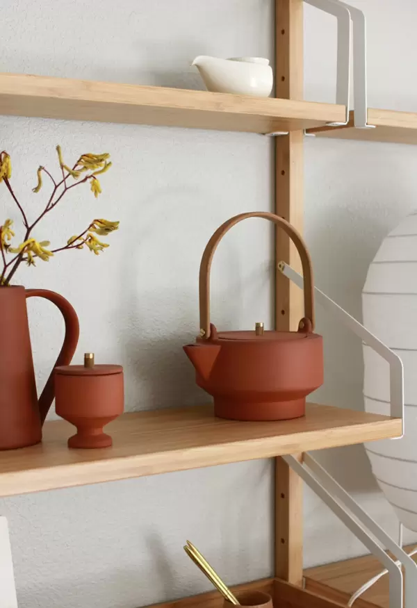 The open framework allows you to display curated items such as earthenware pots, vases, or a traditional Japanese teapot, adding character without clutter. These shelves encourage you to showcase objects that align with Japandi principles: natural, practical, and aesthetically pleasing.