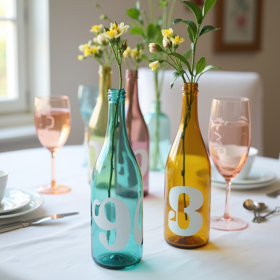 Colorful Glass Bottle Table Numbers
