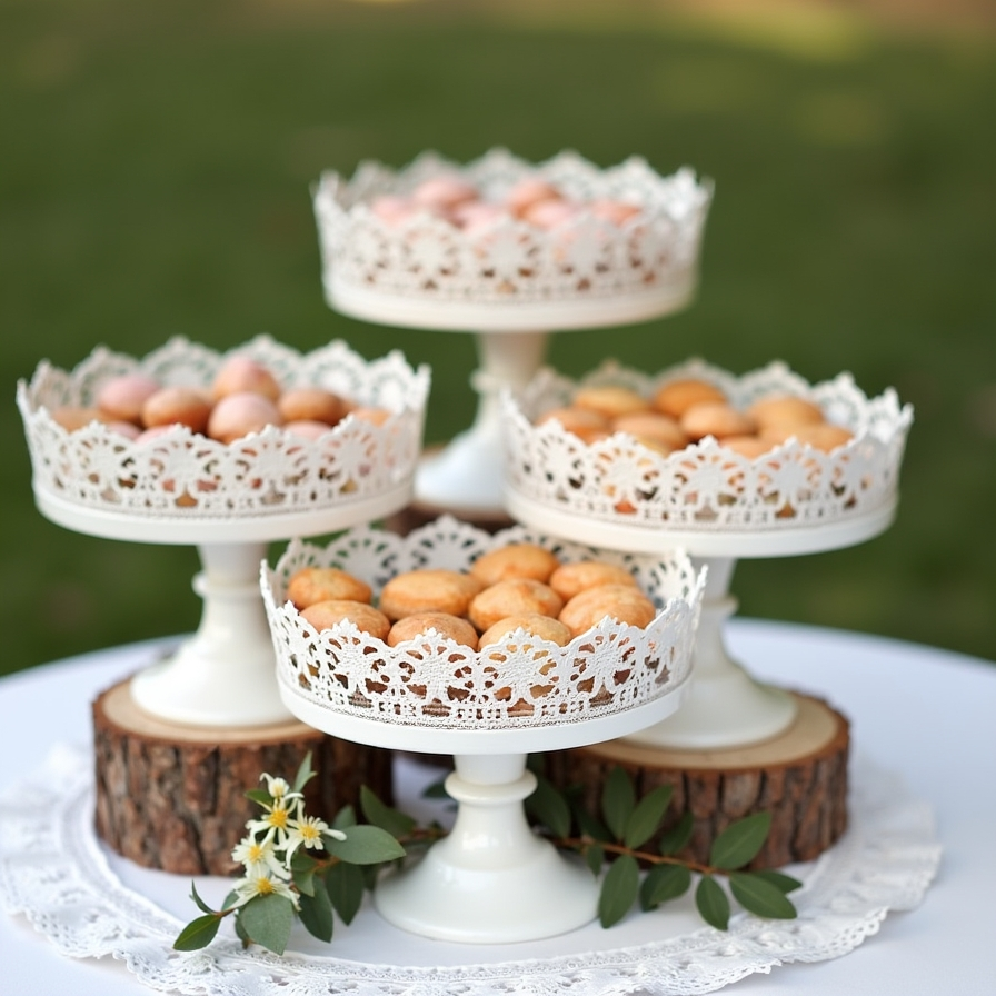 This hack provides height variation and visual interest while showcasing baked goods beautifully. Seasonal accents, like leaves or flowers, can further enhance the display for a themed wedding.
