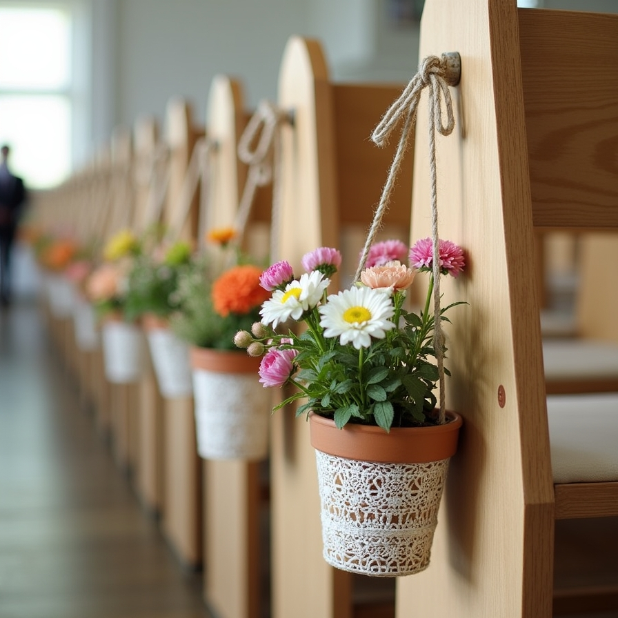These lightweight, portable arrangements are ideal for small spaces or outdoor ceremonies, providing a budget-friendly way to add decorative flair along the aisle.