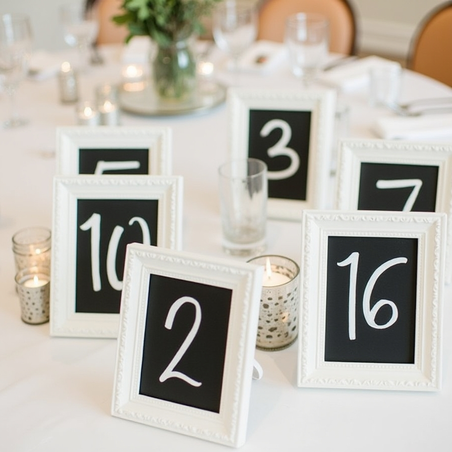 Ikea TOLSBY frames are perfect for displaying table numbers, menus, or signs. Spray painting them and using inserts with contrasting text, such as white on black, creates a chalkboard effect.