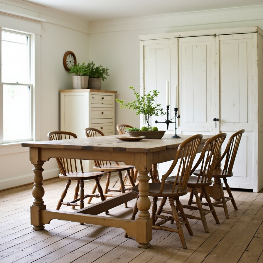 Furniture in cottage-style interiors often feels sturdy, simple, and full of character. Solid wooden pieces with visible grain or a slightly worn finish bring warmth and authenticity into a home. Items like a farmhouse dining table, spindle-back chairs, or an aged cabinet help create the relaxed atmosphere that defines cottage living.