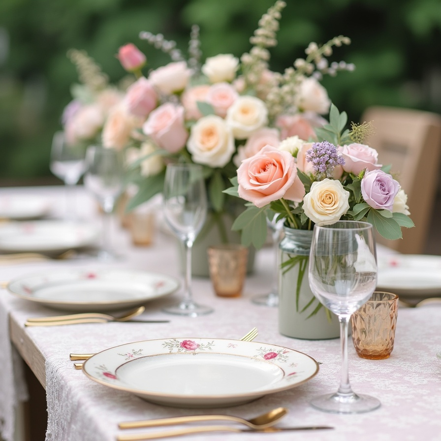 Soft pastels and floral arrangements bring a delicate, romantic Italian garden feel to your dining space. Arrange blooms in shades of pink, lavender, cream, or peach in low, vintage-style vases to maintain intimacy and charm. Pair them with muted gold or silver cutlery, lace runners, and plates with subtle floral patterns for a cohesive look. This setup is ideal for weddings, anniversaries, or any special celebration where elegance and romance are key. The pastel color palette and carefully chosen decor elements create a dreamy, enchanting atmosphere that guests will find visually soothing and inviting.
