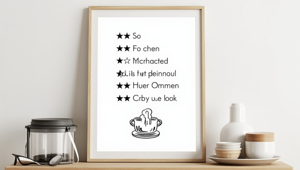 Nestled among simple décor items, the print adds charm without overwhelming the space. Its lively typography draws the eye, complementing contemporary or traditional interiors alike. By blending function with fun, it reminds us that a kitchen can be both practical and playful.