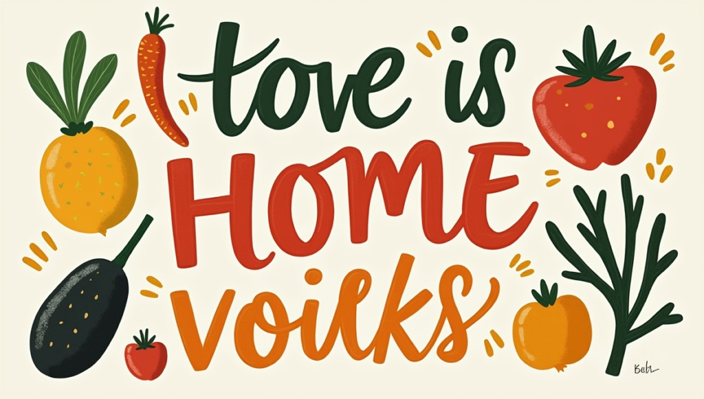 Add a splash of color and energy to your culinary space with a lively wall print celebrating the joys of cooking and home life. Featuring bright fruits, vegetables, and bold typography, this piece conveys a cheerful message, inviting warmth, comfort, and hospitality into your kitchen.