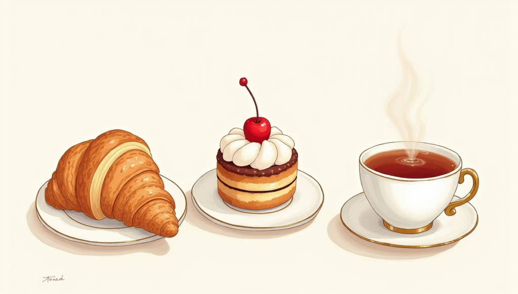 Its soft pastel tones and detailed illustrations offer a gentle, cheerful aesthetic that brightens any wall. Perfect for breakfast nooks or spaces where you sip your morning tea, the print encourages leisurely moments and relaxed gatherings. Beyond its decorative appeal, it reminds us that small rituals, like a warm pastry with tea, can bring joy to daily routines.