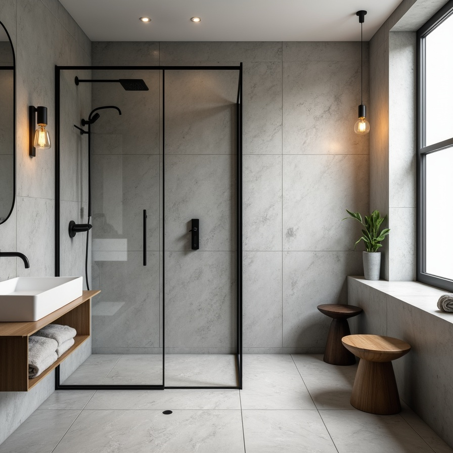 Concrete-look tiles bring urban sophistication without feeling stark or cold. Large, smooth tiles make the shower area feel cohesive, while matte finishes soften the ambiance and diffuse light gently. Pair with a black-framed glass panel to enhance the modern aesthetic, giving your bathroom a magazine-worthy edge. Surprisingly, this design works well in compact spaces; oversized tiles visually expand walls and add a sense of openness. Concrete textures offer a grounded, contemporary feel without overwhelming, making it a versatile option for those who want an urban spa vibe in their own home.