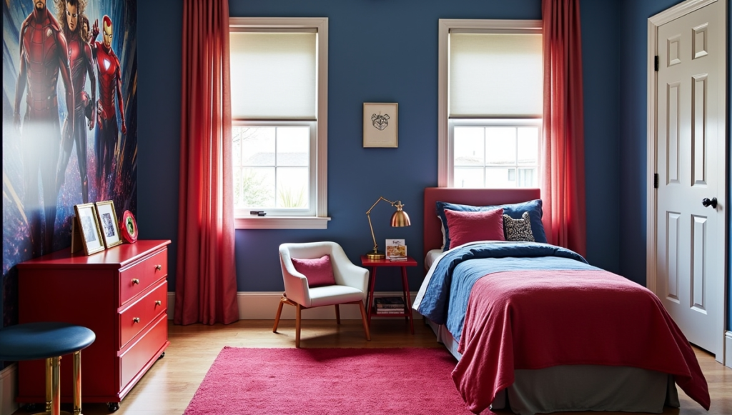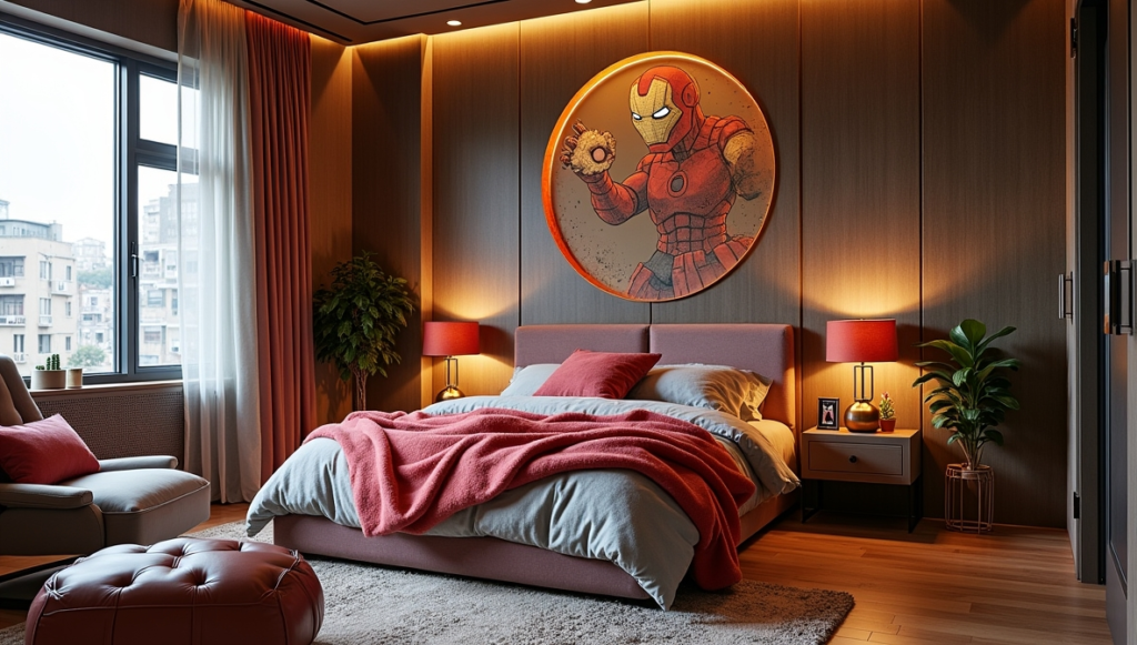This space embraces deeper tones and high-impact visuals, creating a dramatic Marvel-inspired environment. The bold colors, textures, and lighting deliver intensity while keeping the room stylish and functional. It balances immersive storytelling with livable design, providing a space that feels adventurous and sophisticated. The aesthetic is perfect for fans who enjoy superhero themes with a cinematic edge. Careful attention to layout and accessory placement ensures the room remains practical for everyday life while delivering maximum visual drama.