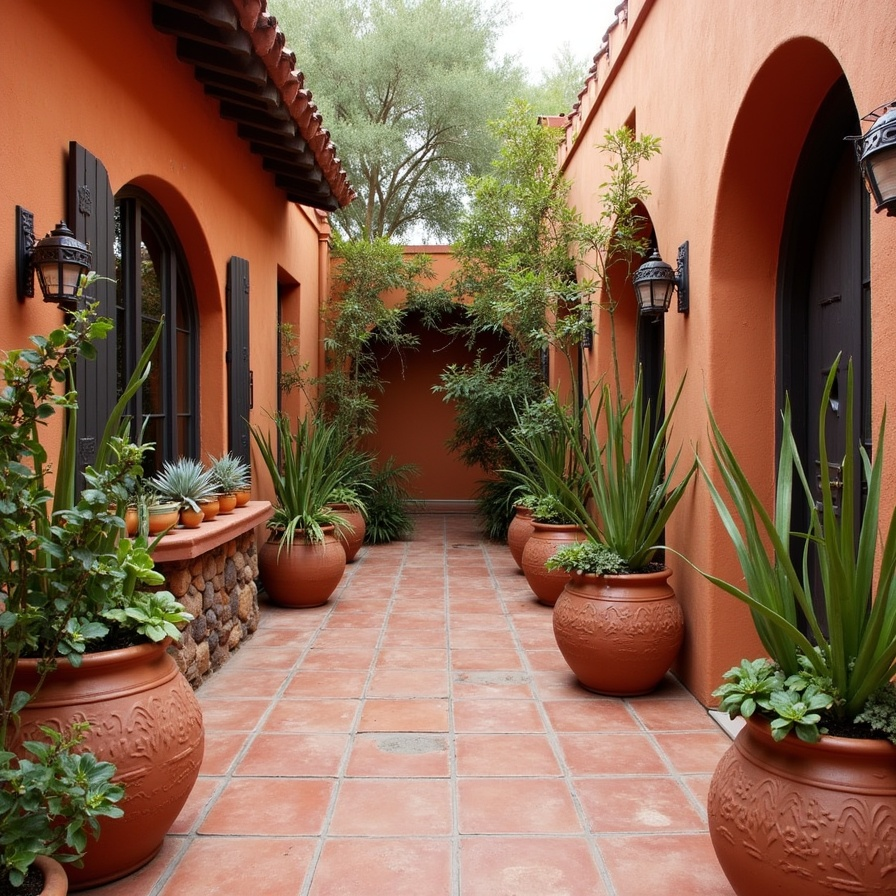 Terracotta is one of the most recognizable materials used in traditional Mexican patio design. Its warm, earthy color reflects the natural tones of clay and soil, instantly creating a welcoming and rustic atmosphere. You can use terracotta floor tiles, clay pots, or decorative planters to introduce this timeless material into your outdoor space. Large terracotta containers filled with succulents, herbs, or flowers add character to corners and pathways. Over time, terracotta naturally develops a beautiful aged look, which enhances the authentic charm of your patio and makes the space feel warm, grounded, and inviting.