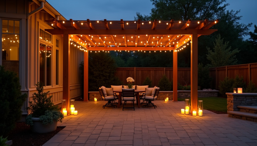 Lighting plays a key role in creating a relaxing patio atmosphere. String lights can be draped across the patio or along pergolas to provide soft, warm illumination. Candles placed inside lanterns or glass containers add another layer of gentle light. Traditional paper lanterns known as luminarias can also be placed along pathways or steps for special occasions. The combination of lights and candles makes the patio feel cozy and inviting after sunset. Good lighting allows you to enjoy your outdoor space long into the evening.