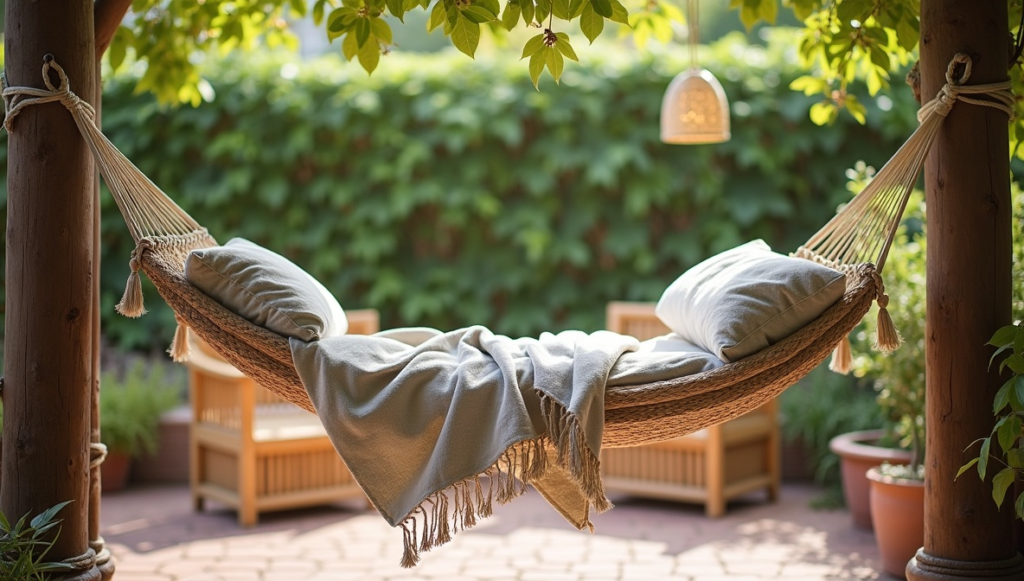 A hammock is a simple addition that instantly makes a patio feel more relaxing. In many warm regions, hammocks are used as comfortable spots for resting, reading, or enjoying a quiet afternoon nap. They can be hung between two trees, attached to sturdy posts, or supported by a freestanding frame. Adding a soft pillow or lightweight blanket makes the space even more inviting. The gentle swaying motion of a hammock encourages relaxation and transforms your patio into a peaceful retreat for everyday enjoyment.