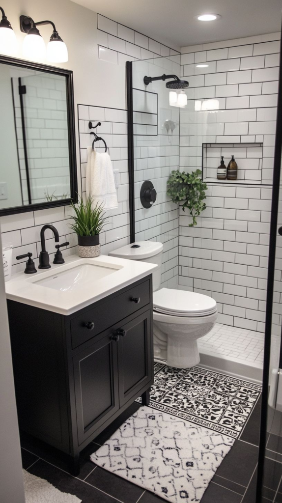 Modern minimalist bathrooms focus on sleek design, neutral tones, and efficient layouts. Floating vanities, frameless showers, and streamlined fixtures emphasize clean lines and open space. Materials like glass, stone, and metal contribute to a polished, contemporary aesthetic. Subtle lighting enhances textures and adds warmth without cluttering the design. Modern bathrooms prioritize function and visual appeal equally, creating spaces that feel fresh, comfortable, and stylish. This style is ideal for homeowners who want an on-trend, practical bathroom that combines simplicity with sophistication in a way that suits everyday life.