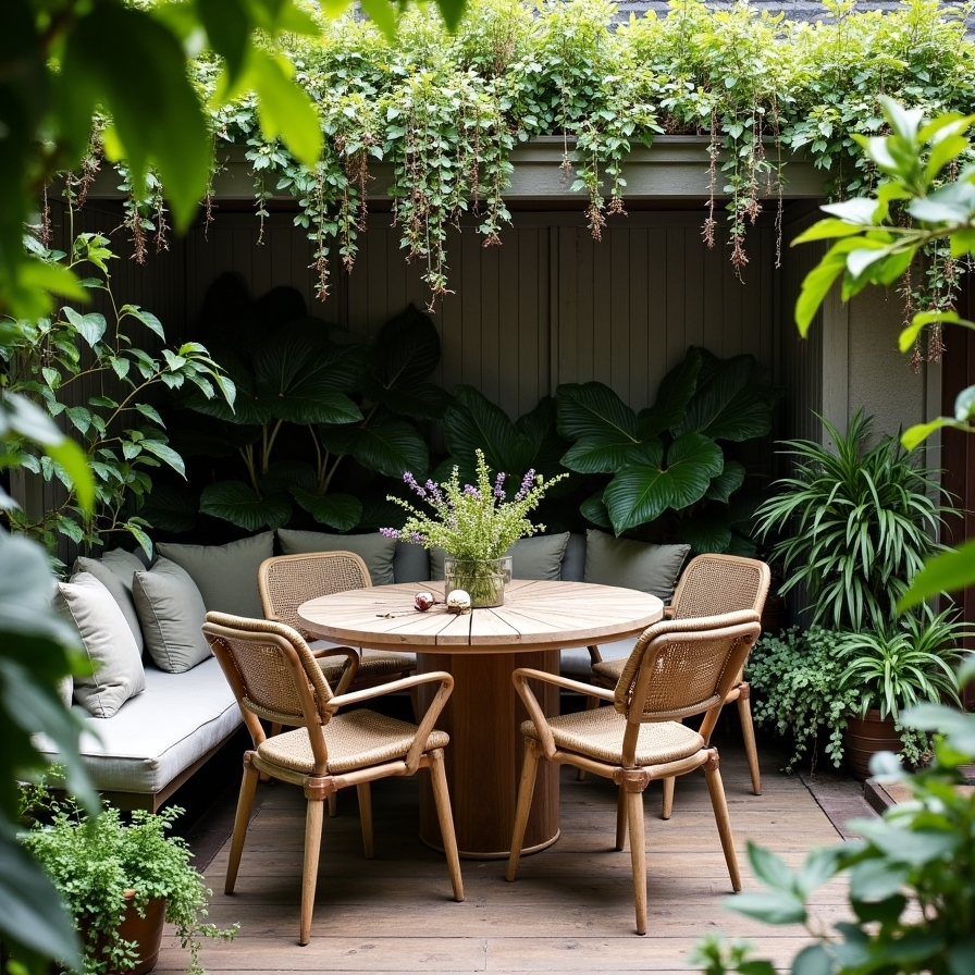 Nestled within layered greenery, this dining nook feels like a secret garden retreat. Natural materials and organic textures create intimacy without sacrificing space, while the surrounding plants guide attention inward to the table. The setup encourages slow afternoons, long conversations, and mindful dining. Thoughtful integration of landscape and furniture allows nature to lead the design, resulting in a space that feels romantic, peaceful, and connected. It’s a garden-first approach that elevates casual dining into a special experience.