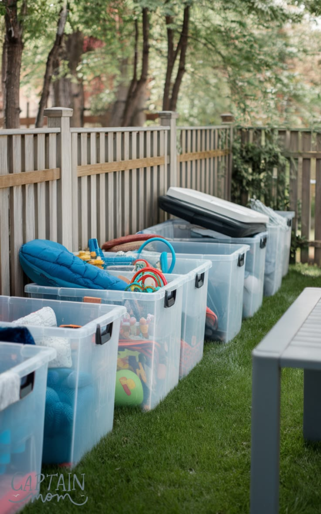 Beyond their practicality, buckets also add a touch of casual charm to your outdoor space. Clear or labeled buckets make it easy to see what’s inside, reducing the time spent searching for misplaced toys. Whether for sand toys, sports equipment, or smaller trinkets, buckets provide a reliable and budget-friendly storage option.