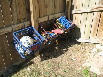 Pails may seem basic, but they can be surprisingly effective for outdoor toy storage.