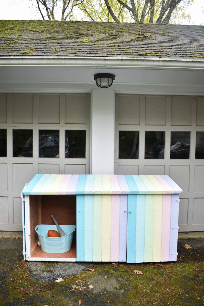 Looking for a playful, eye-catching storage solution? A rainbow shed is a colorful choice.