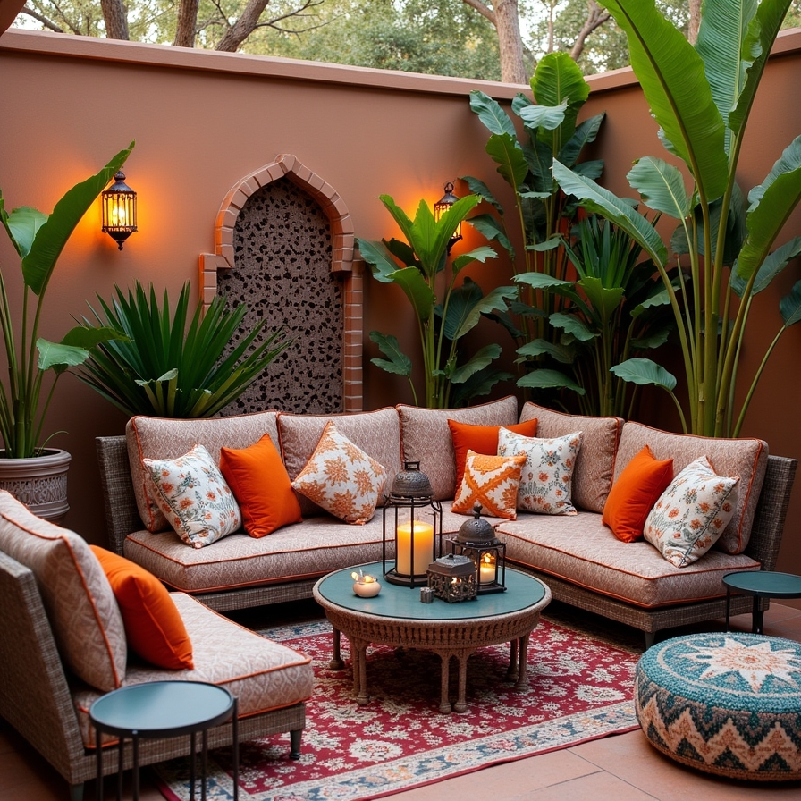 Moroccan-inspired decor brings a sense of exotic elegance and pattern to outdoor spaces. Think lanterns, patterned cushions, poufs, and intricate rugs to create a layered, textured look. Earthy tones combined with pops of jewel colors like teal, amber, or deep red evoke warmth and character. Use decorative screens, low tables, and planters to complete the aesthetic. Layering patterns, textures, and lighting helps maintain visual interest without overwhelming the space. Moroccan elements can transform an ordinary patio into a cozy, culturally rich retreat that’s both stylish and inviting.