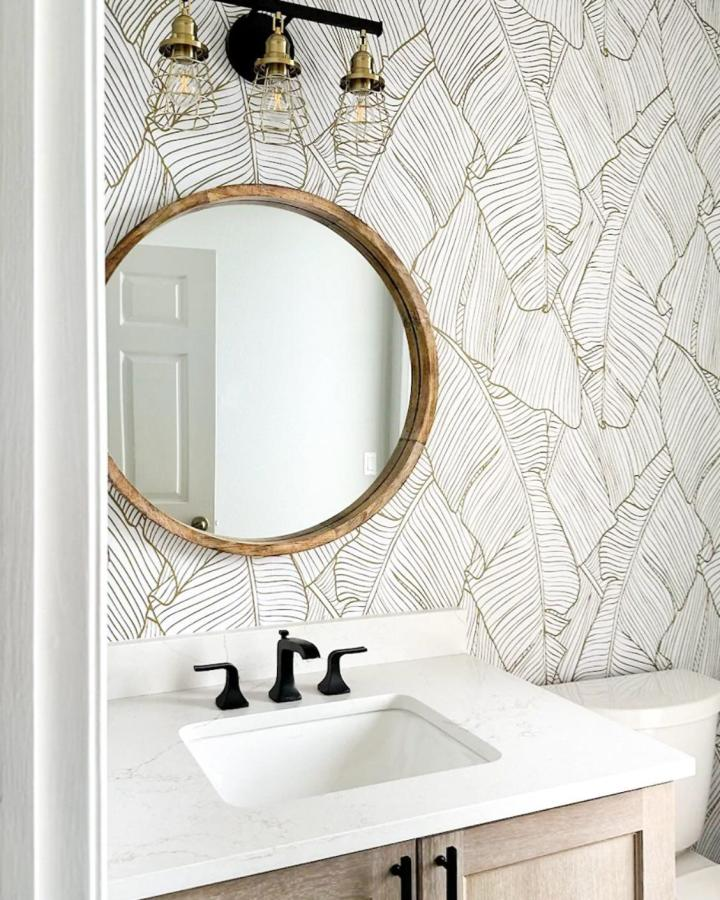 Peel-and-stick wallpaper makes it easy to experiment with décor, letting you refresh walls whenever you want. Pairing this design with matte black fixtures, wooden mirrors, or rustic accessories elevates a space, creating a calm, nature-inspired atmosphere ideal for relaxation.