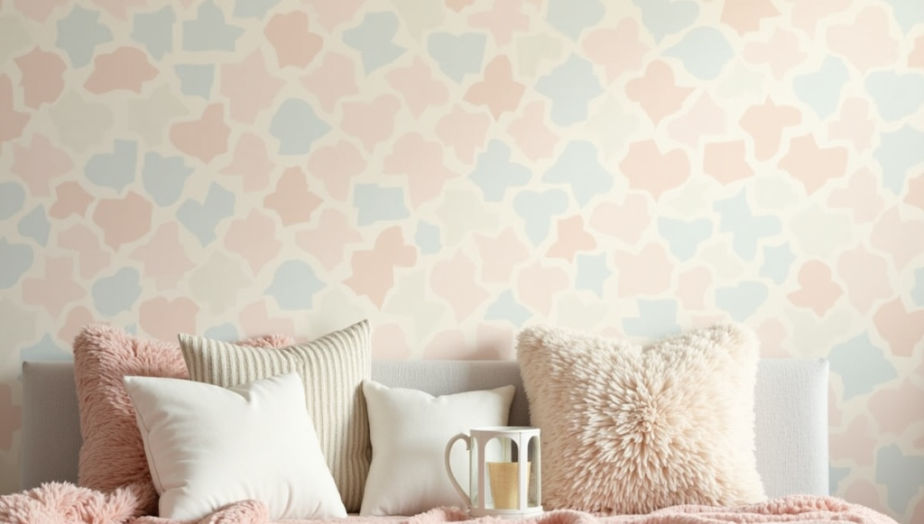 Softly scalloped peel-and-stick wallpaper in pastel tones adds a gentle charm to children’s rooms or cozy nooks. The subtle curves introduce movement and visual interest while keeping the look serene.