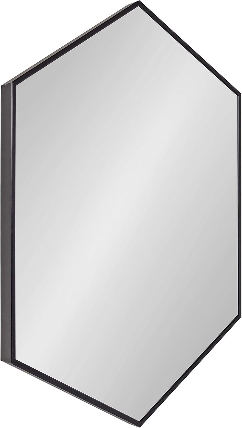 Hexagon wall mirror, 31″x22″, contemporary framed design, versatile vertical or horizontal hanging, enhances light and space, stylish addition to modern home décor.