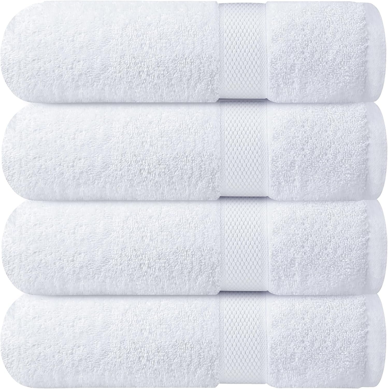 Infinitee Xclusives Luxury 100% Ring-Spun Cotton White Bath Towels Set of 4