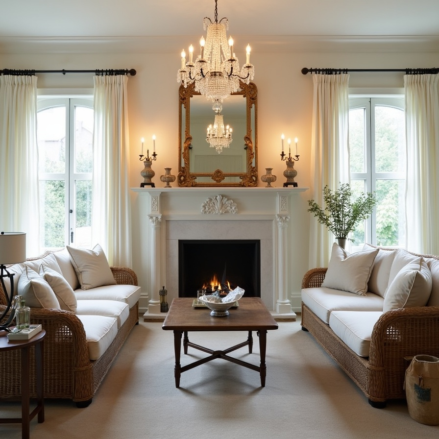 This design balances elegance with comfort. The combination of wicker furniture, plush pillows, and carefully selected vintage pieces gives depth to the space. Romantic without being fussy, it’s a living room that feels ready for curling up on chilly evenings, enjoying the subtle glow of candlelight with friends or family.