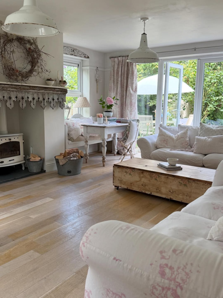 This room embodies timeless shabby chic: graceful, romantic, and layered with personality. It proves that restraint, paired with carefully chosen details, can result in a living space that feels rich and inviting.