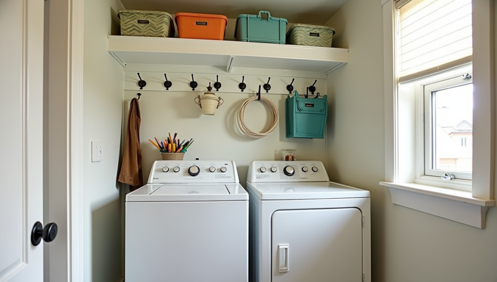 Tucked-in utility rooms maximize efficiency in compact spaces. Clever layouts, built-in storage, and space-saving furniture make the most of every inch. This setup ensures items are accessible while keeping the room organized and tidy. A tucked-in design is ideal for small homes, apartments, or areas where space is limited. It balances usability and aesthetics, providing a practical, well-organized space that makes chores easier and keeps the area visually appealing.