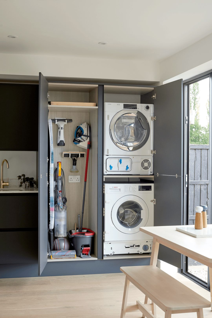 Refined utility rooms combine elegance with functionality. Attention to detail, high-quality materials, and cohesive design make the space feel sophisticated. Storage solutions are integrated seamlessly, and finishes are carefully chosen to complement the room’s aesthetic. This setup balances practical needs with polished aesthetics, creating a small utility room that is both beautiful and functional. A refined approach ensures that even a compact space feels organized, stylish, and thoughtfully designed for everyday use.