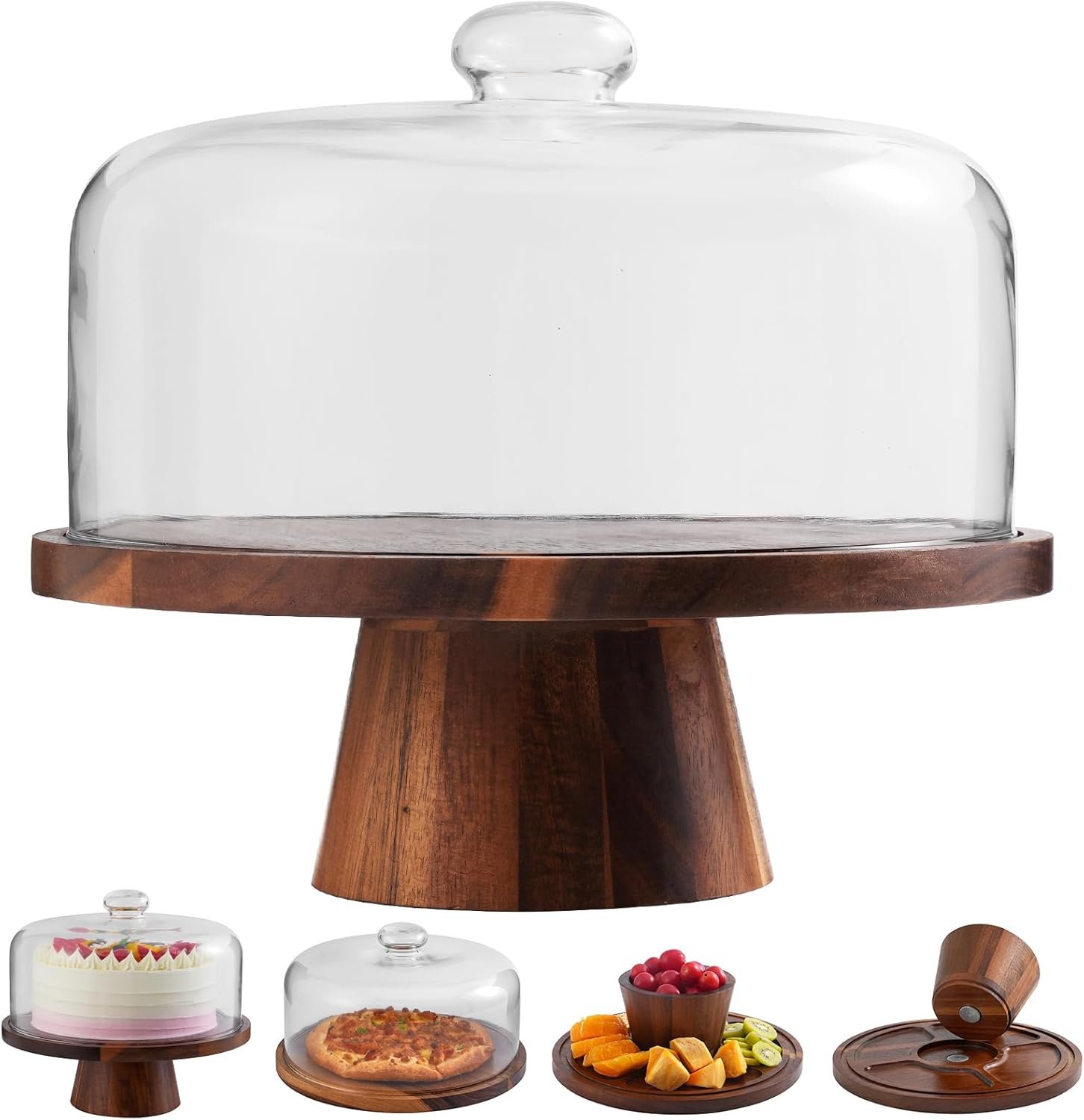 Showcase cakes, cheeses, and desserts in style with this premium acacia wood cake stand and clear glass dome. Magnetic base ensures stability, while the detachable tray doubles as a platter for snacks or charcuterie. Elegant, easy to clean, and perfect for parties, weddings, or everyday use.