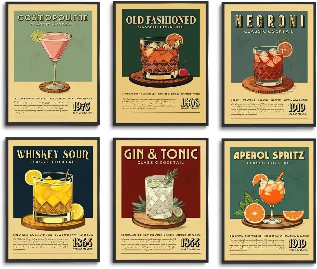 Add vintage charm to any space with this set of 6 retro cocktail bar canvas prints. Featuring classic mixology designs, vibrant colors, and high-quality canvas, these posters are perfect for home bars, kitchens, lounges, or as a stylish gift for friends who love cocktails.