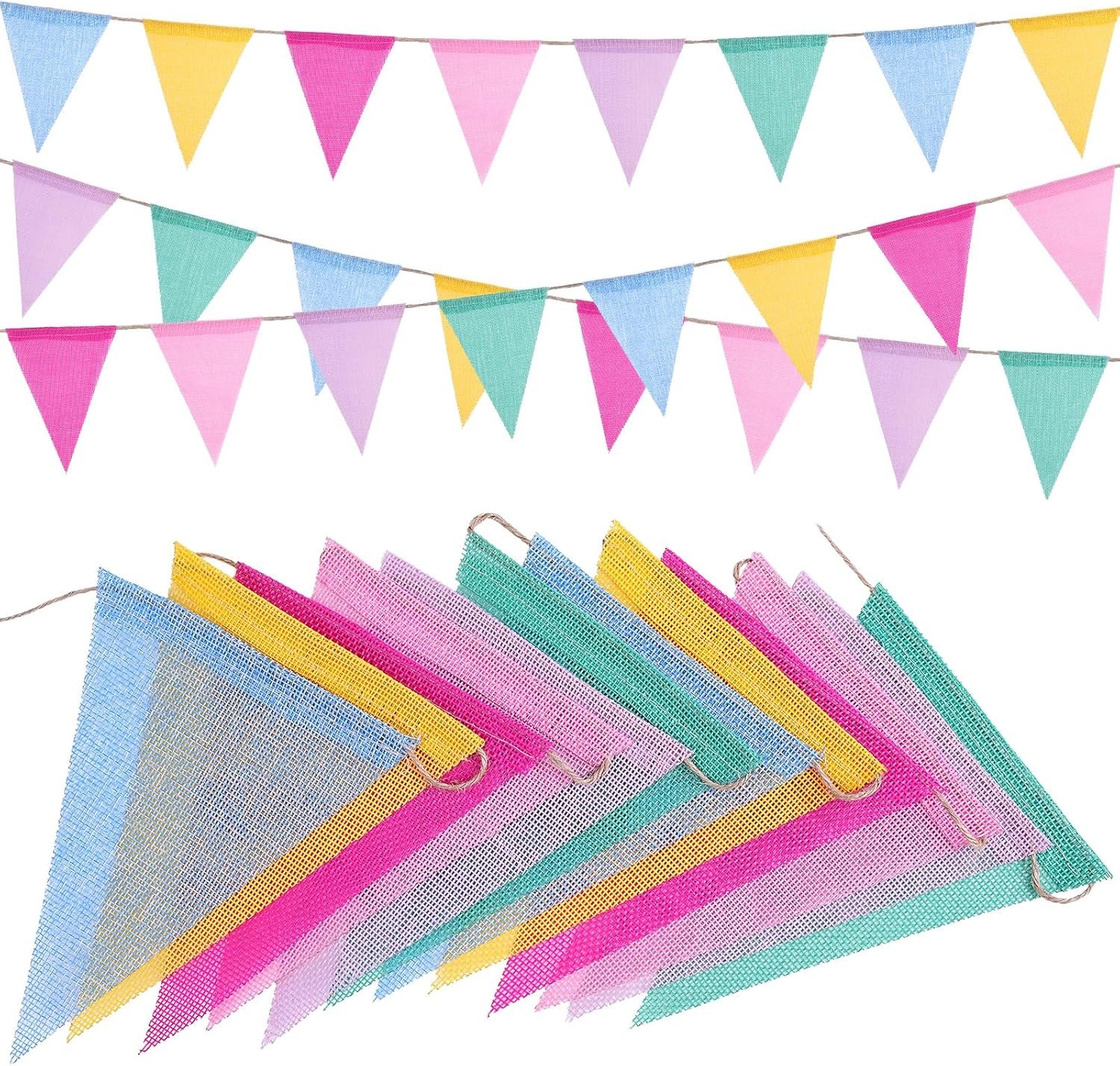 Decorate any space with 52 feet of colorful pennant banners—48 flags in six pastel colors, pre-strung for easy hanging. Made of durable, fade-resistant linen, they’re perfect for birthdays, baby showers, garden parties, classrooms, or outdoor events, adding cheerful, photo-ready flair to every celebration.
