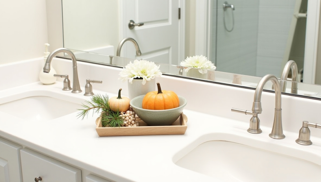 Rotate your decor with the seasons to keep your bathroom fresh and inviting. Mini pumpkins in fall, sprigs of pine in winter, pastel blooms in spring, or small seashells in summer instantly update the space. Seasonal touches are easy to swap and don’t require a full redesign. Pair them with neutral base items like trays or baskets so the seasonal elements stand out. This approach keeps your bathroom decor feeling lively, relevant, and thoughtfully styled throughout the year.