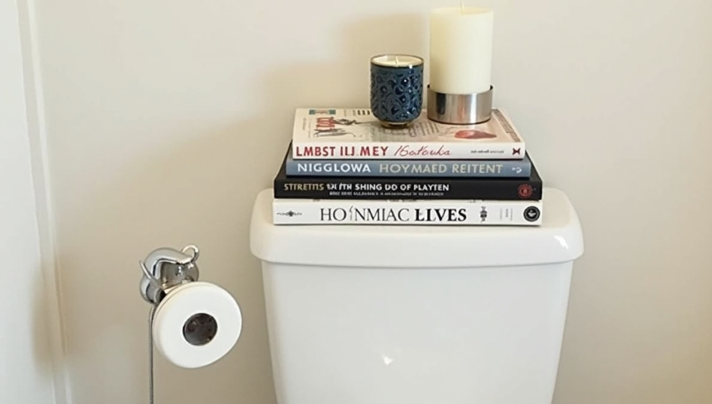 Bring a touch of coffee table sophistication to your bathroom by stacking small books or magazines on the tank. Top them with a candle or a decorative trinket for added interest. Ensure materials are moisture-safe to prevent damage in humid conditions. This arrangement adds a cozy, lived-in feel and can reflect your personal style. It’s a simple way to incorporate both function and aesthetics, providing something visually appealing for guests while maintaining a curated and organized look.