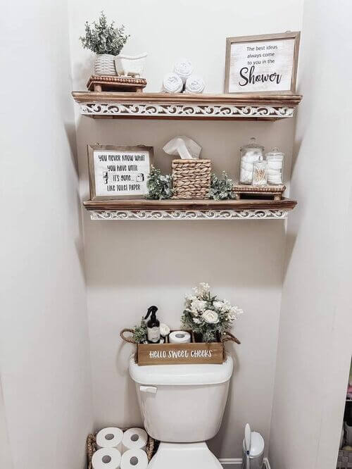Often overlooked, the space above your toilet tank is a small but powerful spot to add style and personality to your bathroom. With a few creative touches, you can transform this area into a functional and decorative feature. Toilet tank decor ideas range from elegant trays and potted plants to charming candles, artwork, or seasonal accents that enhance the room’s vibe.